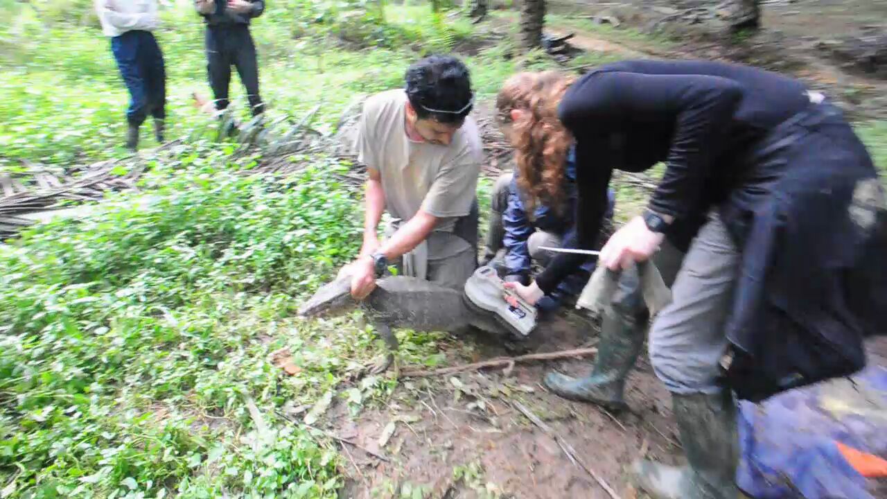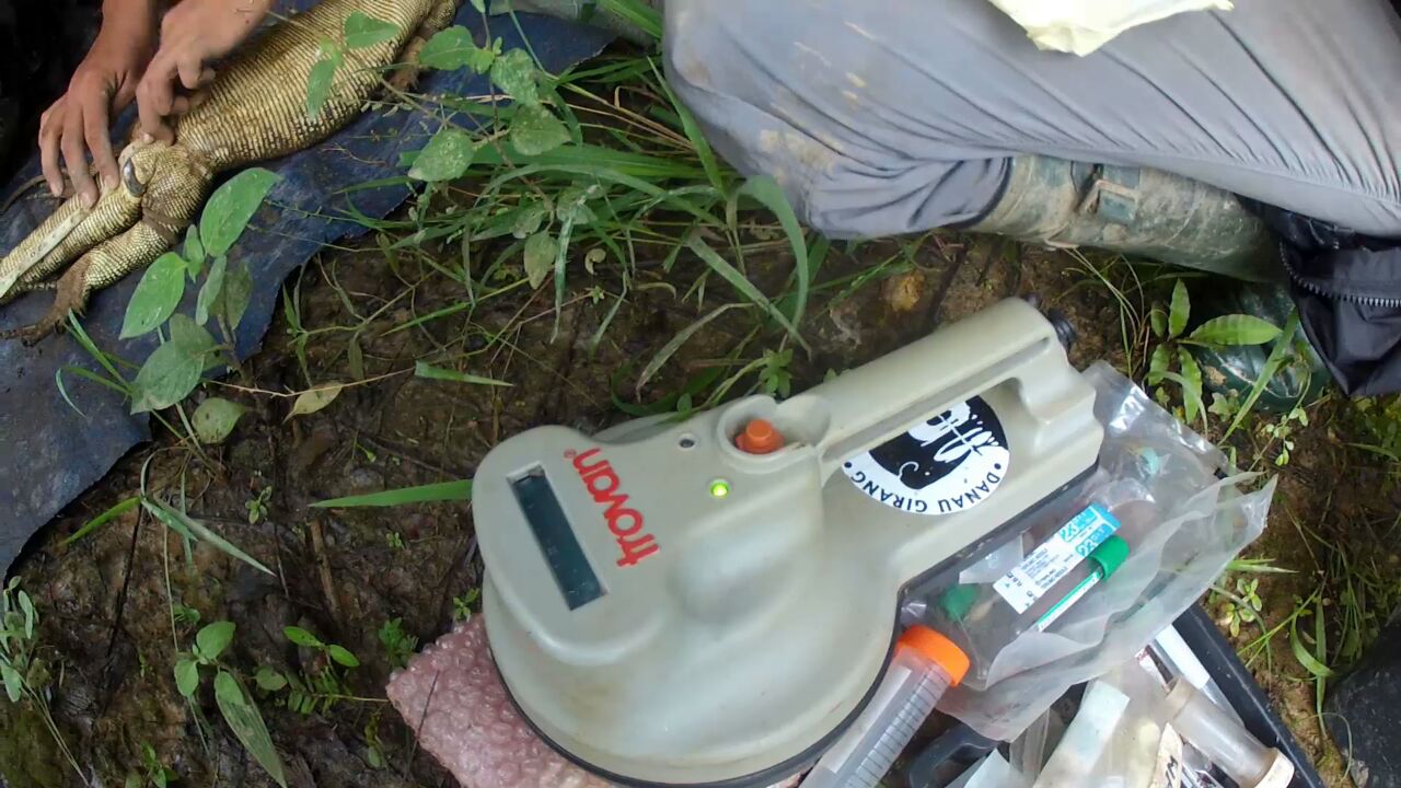 ABOVE: Implanting procedure taking place in the lower Kinabatangan Wildlife Sanctuary.